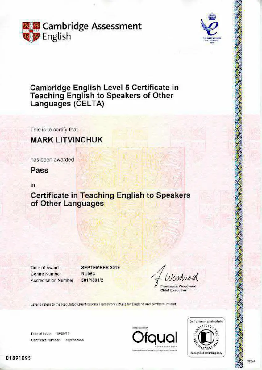 Щиро вірю, що навіть найскладніші теми можна пояснити простими словами. Мої уроки це завжди в першу чергу про ефективність та дружню атмосферу, адже для мене важливо, щоб учні експерементували з мовою, не боялися помилок і крок за кроком йшли до своєї цілі, а я їх завжди у цьому підтримую. Люблю робити навчання максимально практичним і персоналізованим – щоб був мінімум сухої теорії, а знання одразу працювали в реальних ситуаціях. Дехто жартує, що я справжній CELTA-сектант, бо занадто часто згадую цей курс. Але я справді вірю: це зробило мене тим викладачем, який допомагає студентам рости швидше.